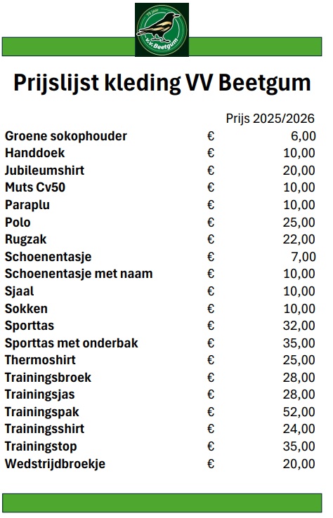 De kledinglijn van v.v. Beetgum is zonder meer een groot succes te noemen. Iedere zaterdag zien we met name de jeugd met gepaste trots in de trainingspakken lopen.